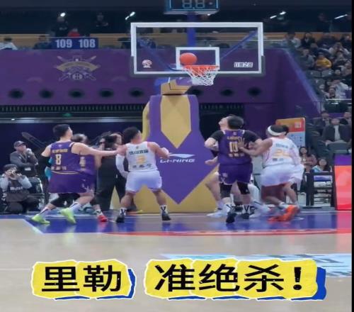 不是么?打到最后四五秒還充滿懸念,勝負(fù)難定,并出現(xiàn)了有趣一幕。最后4.9秒北控隊落后一分,只見里勒從底線發(fā)起進攻,打中兩分,反超深圳一分,里勒以為絕殺比賽了,當(dāng)場做出“晚安”的慶祝動作,現(xiàn)場的北控球迷也一片歡呼,慶祝勝利的到來。