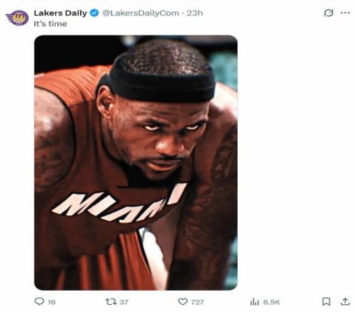 湖媒Lakers Daily曬出詹姆斯死亡之瞳的經(jīng)典一幕寫道:是時(shí)候了。