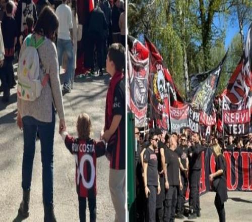 報道稱,現(xiàn)場約有4000名米蘭球迷甚至更多,還有一群身穿萊奧、魯伊-科斯塔、馬爾蒂尼以及莫德里奇球衣的孩子們,南看臺球迷揮舞著旗幟、敲著鼓。