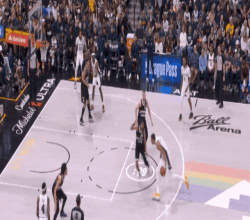 這一球的關(guān)鍵:約基奇遞球后外彈,扣籃位是戈登對尚帕尼。