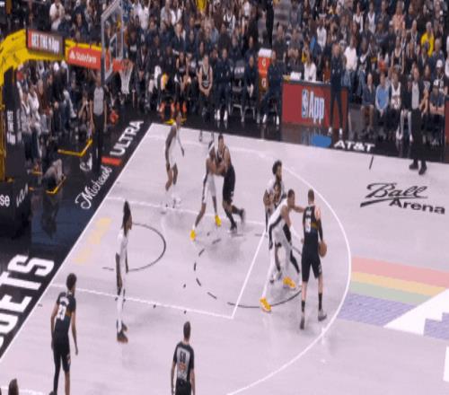 下一回合,約基奇和穆雷招牌遞手,穆雷投了??怂?。