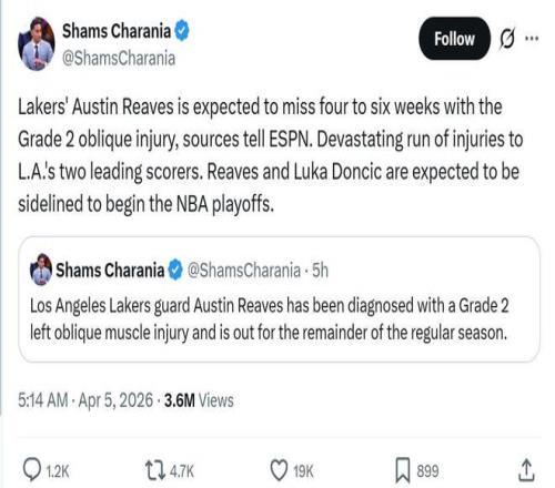 之所以沒有像東契奇一樣在昨天確認傷病,原因是里夫斯第一次接受MRI檢查時,在湖人明確告知應當掃描具體部位的情況下,達拉斯影像中心還是掃錯了地方。