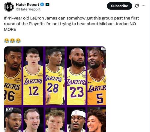 美媒HaterReport為詹姆斯造勢到:“如果41歲的詹姆斯帶領這樣一支湖人闖過季后賽首輪,我就再也不想聽到他和喬丹的任何討論了!”