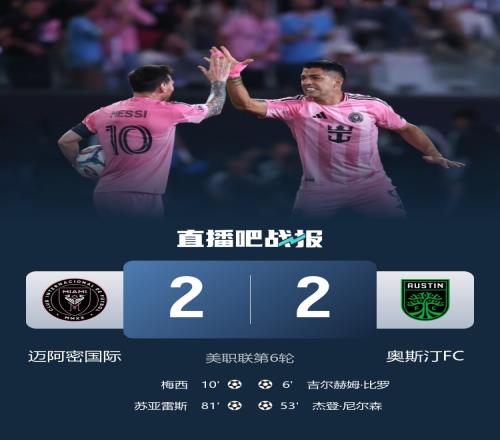 新主場首戰(zhàn)打平!邁阿密22奧斯汀梅西生涯第903球蘇牙替補救主