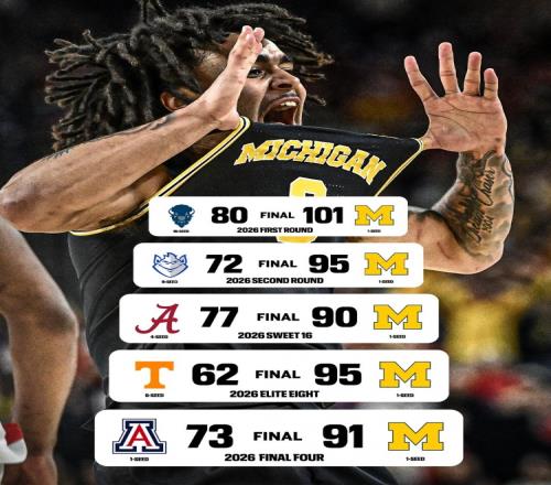 火力十足!密歇根成為首支在單屆瘋?cè)B續(xù)5場至少拿到90分的球隊