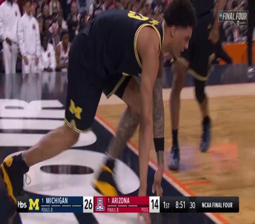 體育播報4月5日宣 NCAA終極四強,密歇根與亞利桑那的比賽正在進行。
