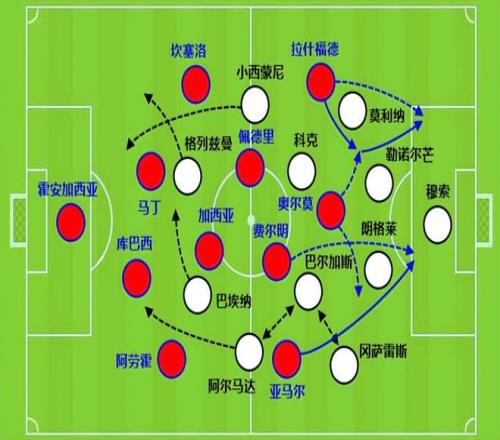 這樣的進(jìn)攻是非常打擊馬競(jìng)防線的,奧爾莫偽九也好,打前腰也好(萊萬中鋒),其實(shí)都相當(dāng)克制馬競(jìng)。