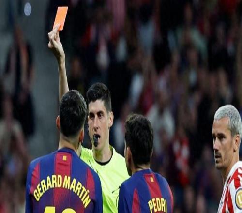 事件的焦點(diǎn)集中在下半場剛開始的第46分鐘。當(dāng)時,巴塞羅那年輕后衛(wèi)杰拉德·馬丁在中場的一次兇狠鏟搶中踢到了馬競球員蒂亞戈·阿爾馬達(dá)的腿部,當(dāng)值主裁判第一時間直接向他出示了紅牌。