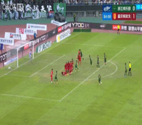 第85分鐘,浙江弧頂左側(cè)位置不錯(cuò)的定位球機(jī)會(huì),米特里策主罰直接打門高出↓