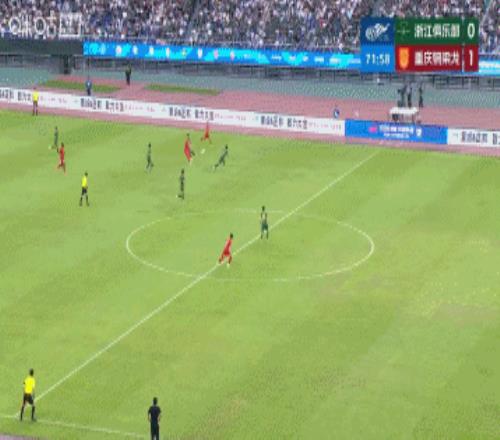 第72分鐘,重慶銅梁龍后場(chǎng)長(zhǎng)傳反擊,杜月徵跟進(jìn)拿球個(gè)人能力1過(guò)2擺脫盧卡斯和樸鎮(zhèn)燮防守單刀破門!VAR確認(rèn)進(jìn)球有效!浙江主場(chǎng)0-1落后↓