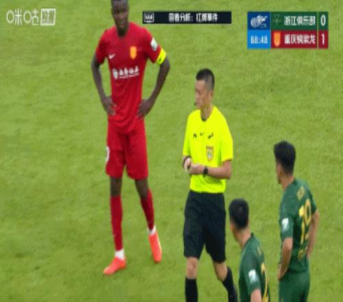 第45+3分鐘,重慶銅梁龍教練組成員抗議判罰吃到直紅↓