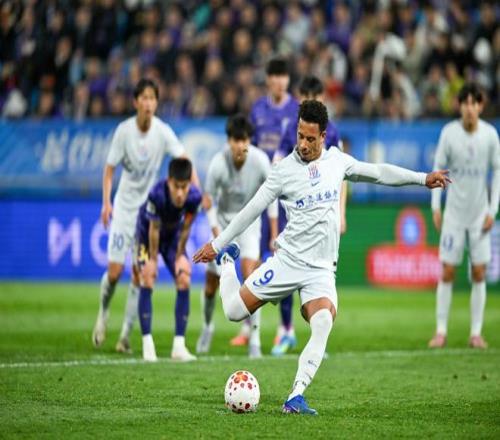 4月5日,在天津舉行的2026賽季中國足球超級聯(lián)賽第四輪比賽中,上海申花隊(duì)客場3比2戰(zhàn)勝天津津門虎隊(duì)。