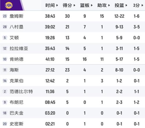個人數(shù)據(jù)上,詹姆斯22中12,空砍30分9板15助,肯納德15分16板11助,海斯23分。弗拉格27中14,為獨行俠轟下45分8板9助。湖人這邊打得最差的球員是拉拉維亞,11投僅3中,三分5中1,14分5板,2失誤6犯規(guī)離場,攻不進(jìn),防守被針對,湖人要下滑至西部第5嗎?
