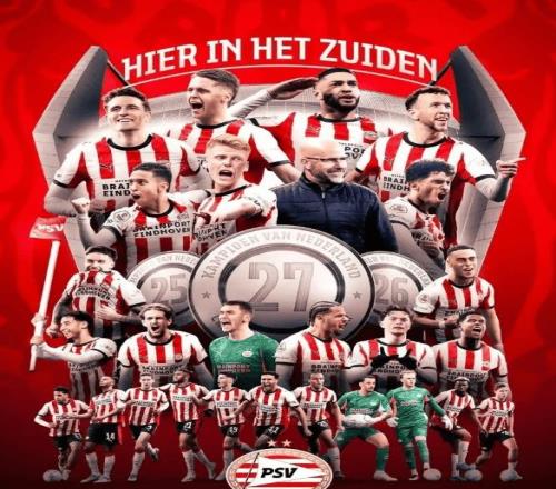 這下,埃因霍溫在還剩5輪的情況下領(lǐng)先第二名17分,數(shù)學(xué)上已無任何翻盤可能。于是,他們提前加冕,實(shí)現(xiàn)荷甲三連冠,隊(duì)史第27次捧起聯(lián)賽金杯!