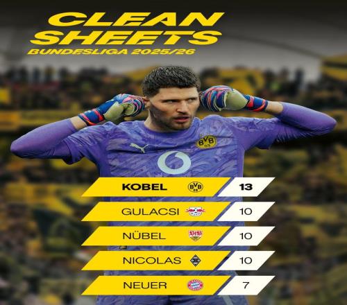 北京時(shí)間4月6日,多特官方發(fā)布了本賽季德甲門(mén)將零封榜單,其中多特門(mén)將科貝爾排名第一。