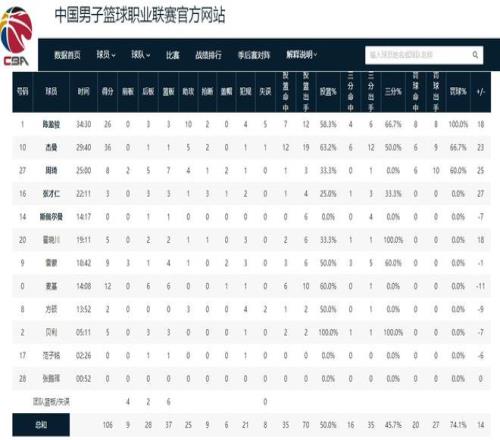 北京男籃贏下這場(chǎng)比賽的兩大功臣,無(wú)疑是杰曼和陳盈駿,這兩人支撐起了球隊(duì)的進(jìn)攻。杰曼在這場(chǎng)比賽中火力全開(kāi),19投12中砍下了36分5助攻2搶斷的數(shù)據(jù);陳盈駿也是大殺四方,12中7得到了26分3個(gè)籃板10次助攻。這兩人合力砍下了62分,幾乎占全隊(duì)得分的三分之二。周琦這場(chǎng)比賽的得分雖然不高,但防守端的作用還是非常明顯的,正負(fù)值達(dá)到了全場(chǎng)最高的+25,這足以說(shuō)明了周琦在場(chǎng)上的作用。