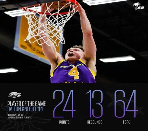 需要說的是,本場南灣湖人上半場就以61-46領(lǐng)先了15分,克內(nèi)克特半場火力全開,一人就轟下了22分,是球隊能夠建立大福領(lǐng)先的關(guān)鍵。