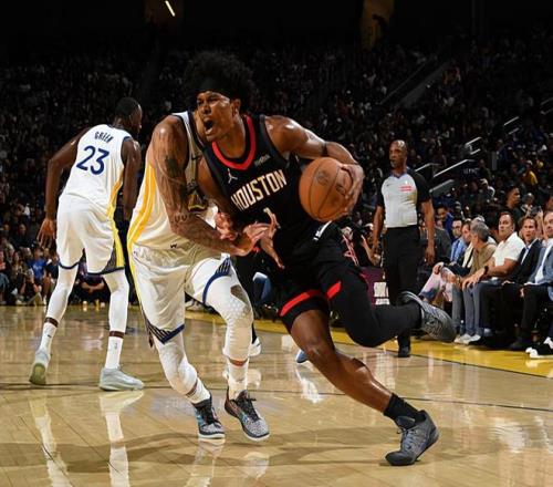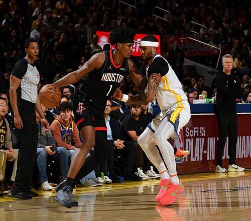 本場比賽中,火箭的先發(fā)后場新星阿門-湯普森(Amen Thompson)又一次將自己在攻防兩端的能力都發(fā)揮了出來。阿門全場出場39分29秒,投籃11中8,罰球4中2,得到了18分3籃板7助攻1搶斷的數(shù)據(jù),還有2次失誤和2次犯規(guī),正負值為+2。阿門在進攻端不斷通過沖擊對手內(nèi)線制造威脅,他將自己在運動能力方面的優(yōu)勢發(fā)揮到了極致,他也是在對手內(nèi)線制造了不小的威脅并且得到了不少的分數(shù)。除此之外,阿門也展現(xiàn)出了一定的傳球能力和組織能力,在進攻端的功能非常全面。最關(guān)鍵的是,阿門在防守端的表現(xiàn)也是相當(dāng)不錯的,他在場上時也是能夠?qū)λ沟俜?庫里(Stephen Curry)進行有效地限制的。阿門在本場比賽中算是發(fā)揮出了自己在攻防兩端的特點,這也為球隊的勝利做出了不小的貢獻。