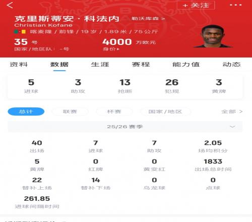 此前德天空記者普萊騰貝格稱,勒沃庫森對科法內(nèi)的估價在5230萬至6100萬英鎊之間,而球員的經(jīng)紀人埃里克·德波洛則認為這位19歲小將的身價為8730萬英鎊。