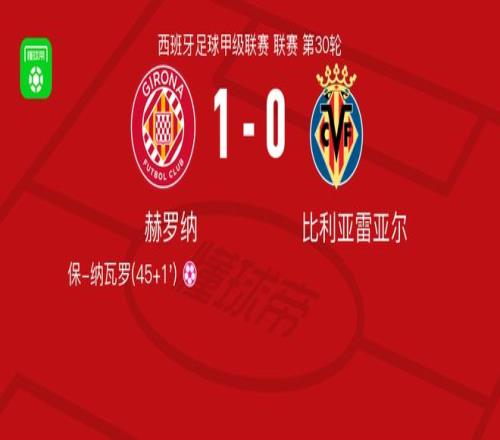 北京時(shí)間4月7日西班牙足球甲級(jí)聯(lián)賽 聯(lián)賽 第30輪,赫羅納主場(chǎng)對(duì)陣比利亞雷亞爾。比利亞雷亞爾保-納瓦羅自擺烏龍。最終比分赫羅納 1-0 比利亞雷亞爾。