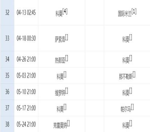 下一輪比賽,科莫就將在主場對陣國米,之后第35輪,他們還將在主場迎戰(zhàn)那不勒斯,這2場比賽的結果,將決定科莫的命運。作為本賽季意甲大黑馬,科莫的表現(xiàn)給球迷帶來了很大的驚喜,不過如果輸?shù)暨@2場惡戰(zhàn),他們很可能無緣前四。