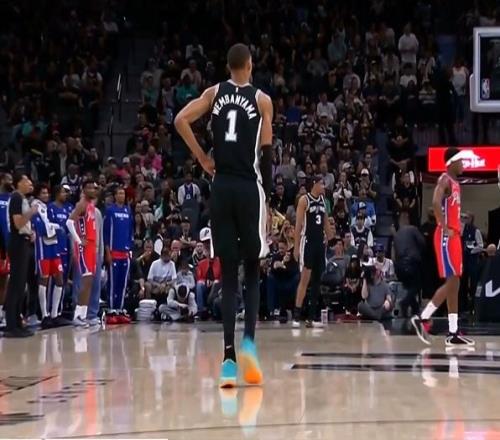 隨后,馬刺官方宣布,文班亞馬因為左肋骨挫傷退賽,提前結(jié)束本場比賽。