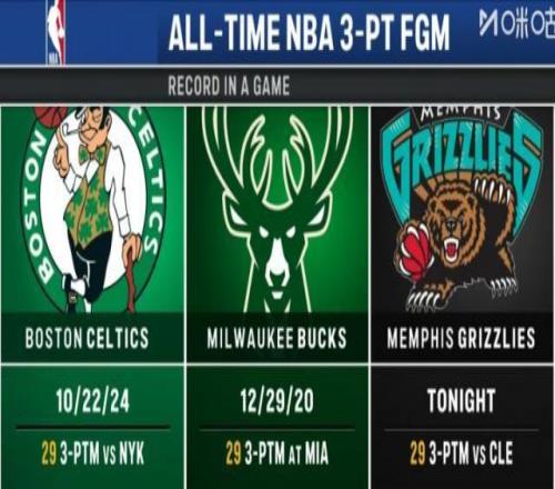 比肩綠軍雄鹿!灰熊轟29記三分追平NBA歷史紀(jì)錄