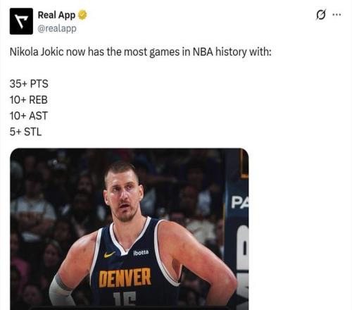 約基奇35+14+13+5斷創(chuàng)NBA歷史第1神跡