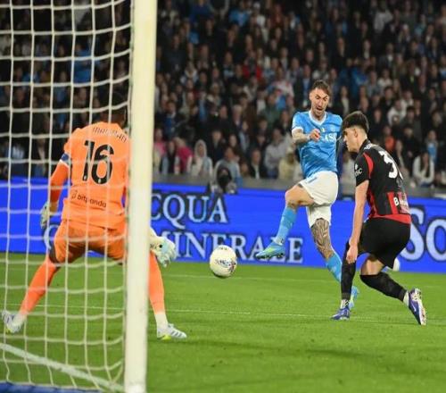 第79分鐘,那不勒斯左路進(jìn)攻,阿利松·桑托斯盤帶分球,奧利維拉跟進(jìn)下底傳中,門前米蘭后衛(wèi)阿特卡梅解圍沒頂遠(yuǎn),后點波利塔諾跟進(jìn)小角度破門,打進(jìn)全場唯一進(jìn)球。