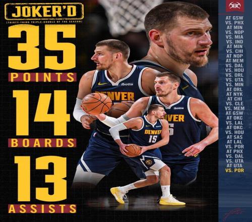 18分逆轉(zhuǎn)開(kāi)拓者!約基奇35+14+13+5創(chuàng)歷史第1神跡,掘金反超湖人