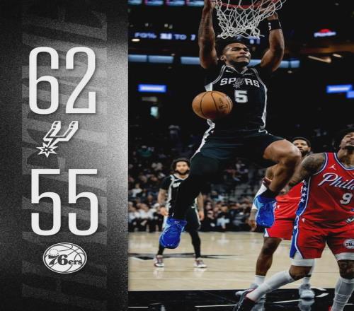 半場戰(zhàn)罷,馬刺62-55領(lǐng)先76人。恩比德12中7砍下20分6板2帽、喬治9中4拿到13分3板1助。中場休息時,馬刺官方宣布:文班因左肋骨挫傷提前退賽。文班亞馬出戰(zhàn)15分39秒,11投7中砍下17分5籃板1助攻3蓋帽,正負(fù)值+7。