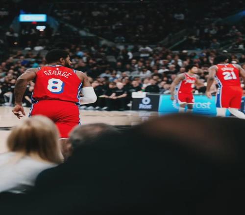 馬刺本場首發(fā): ??怂?、卡斯?fàn)枴⑼呷麪?、尚帕尼、文班亞馬。76人首發(fā):馬克西、埃奇庫姆、烏布雷、喬治、恩比德。喬治狀態(tài)不錯,最近6場比賽場均25.8分6.5板4助3斷,三分命中率44.1%。今天第一節(jié),喬治6中4砍下11分!