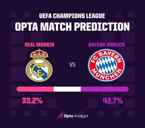 關(guān)于誰勝誰負(fù)的推斷,讓我們先來看看“賽博算卦”。據(jù)Opta的超級計算機模擬推演,今晚似乎會是一個“客隊之夜”——均是作客的一方更被看好能夠拿下比賽的勝利。其中拜仁的獲勝概率達(dá)到42.7%,略高于皇馬的33.2%,而阿森納算出來的獲勝概率更是高達(dá)53.1%,比對手里斯本競技的22.5%高出一倍有余。