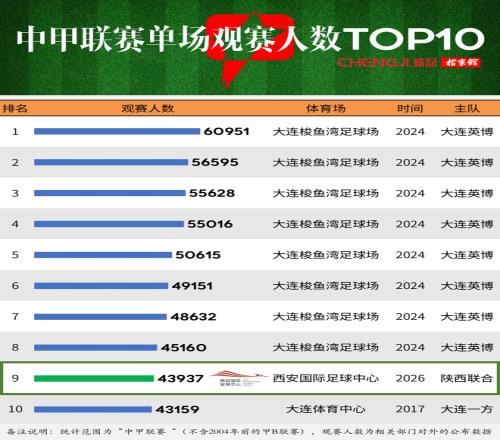 前十榜單中唯一的“非大連”賽事,就在古都西安的西安國際足球中心!