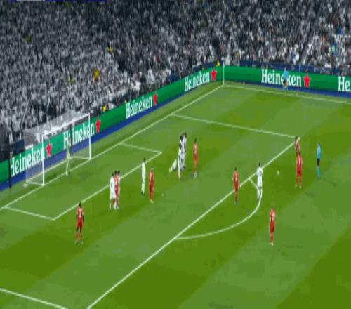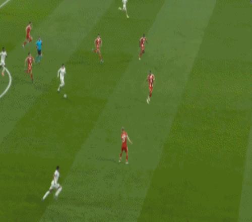 第46分鐘,下半場開場不到30秒,凱恩遠(yuǎn)射破門,拜仁2-0皇馬
