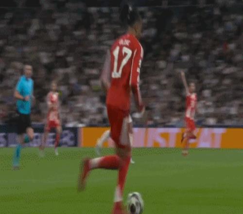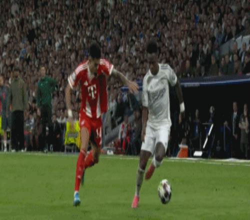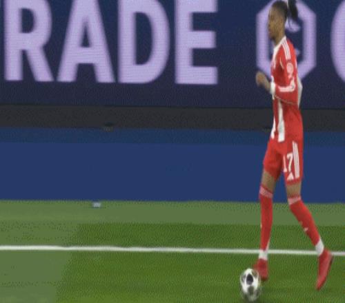 第41分鐘,格納布里直塞,迪亞斯前插推射破門,拜仁1-0皇馬