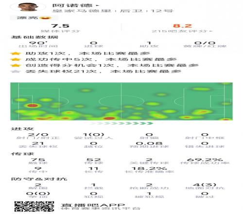 阿諾德本場數(shù)據(jù):1次助攻,2射0正,2次關(guān)鍵傳球,2解圍2搶斷