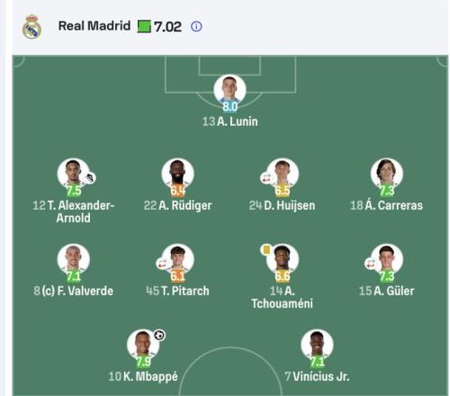 全場(chǎng)數(shù)據(jù)反映了比賽的真實(shí)面貌。姆巴佩完成6次射門4次射正,延續(xù)了歐冠場(chǎng)均1.27球的恐怖效率,但他一個(gè)人的火力不足以挽救皇馬。維尼修斯6次射門3次射正,卻多次錯(cuò)失良機(jī),第66分鐘的單刀打飛成為全場(chǎng)轉(zhuǎn)折點(diǎn)。