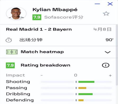 數(shù)據(jù)說話:諾伊爾封神,姆巴佩獨(dú)木難支