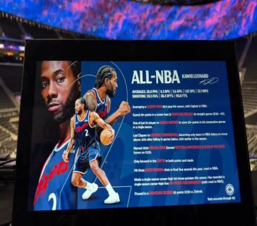 這場比賽快船主場的每一個座位上都貼著科懷-倫納德生涯的履歷,開場小卡的表現(xiàn)也的確炸裂,他帶隊打出了一波17-0的攻防浪潮,他此前已經(jīng)連續(xù)54場比賽拿到20+這場比賽完成連續(xù)55場完全沒有問題。