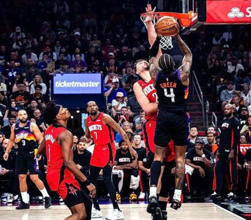 首節(jié)開打,杰倫-格林封蓋阿門-湯普森,兩人纏在一起,奠定了本場比賽基調(diào),隨后杰倫-格林過掉阿門,迎著申京上籃命中,太陽開局16-5領(lǐng)先火箭。杜蘭特連續(xù)2投不中,火箭近5分鐘沒有得分(期間杜蘭特5中0、申京3中0),馬威跟進(jìn)補籃太陽轟出一波18-0,已經(jīng)領(lǐng)先到15分。杰倫-格林送上大帽,馬威連續(xù)打成2+1,太陽繼續(xù)轟出24-0,首節(jié)剛過半26-5已經(jīng)領(lǐng)先火箭多達(dá)21分。杜蘭特急停跳投命中,打破得分荒,布克迎著伊森又打成2+1,得分已經(jīng)上雙,太陽依舊保持20分領(lǐng)先優(yōu)勢。伊森補籃打成2+1,謝潑德三分再中,首節(jié)打完,火箭21-37落后太陽。