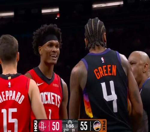 次節(jié)回來,申京5投0中后,背身單打時又出現(xiàn)失誤,今天完全不在狀態(tài)。泰特撞倒狄龍,兩人發(fā)生口角互相推搡,狄龍隨后又造成杜蘭特犯規(guī),火箭太陽不到半場已經(jīng)出現(xiàn)四次沖突。杜蘭特連中三記三分,火箭最多落后21分現(xiàn)已追到僅差6分。布克連續(xù)突破造殺傷,謝潑德三分還能命中回應(yīng),半場戰(zhàn)罷,火箭54-57僅落后太陽3分。