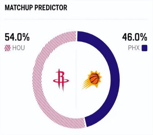 賽前,美媒ESPN對本場比賽進(jìn)行了勝率預(yù)測,火箭隊勝率為54.0% ,太陽勝率則僅有46.0% ,處于劣勢。