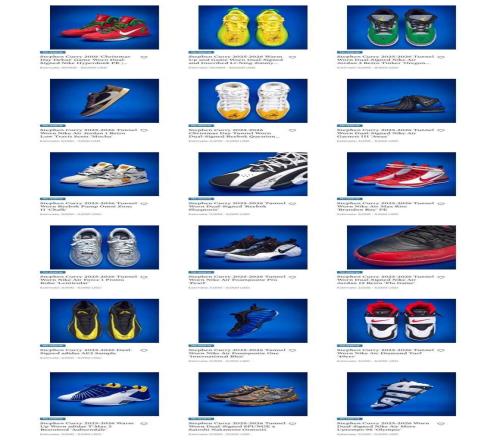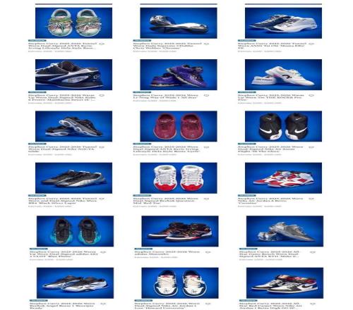目前這些鞋款已經(jīng)亮相蘇富比網(wǎng)站,每一雙鞋都進行了精美的拍攝展示,可以看到有些鞋款上還有庫里的親筆簽名。