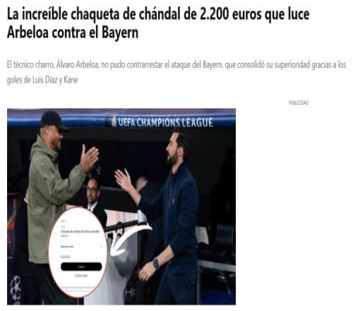 在歐冠1/4決賽首回合的較量中,皇家馬德里以1-2不敵拜仁慕尼黑,賽后關(guān)注的焦點不僅是比賽結(jié)果,還有皇馬主教練阿韋洛亞的著裝。他身披的路易威登運動夾克在市場上售價達(dá)到了2200歐元(約合人民幣17621.56元),引發(fā)了廣泛討論。