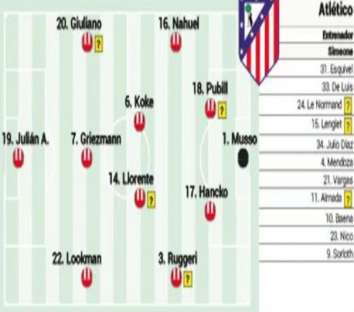 中場(chǎng):科克、馬科斯·略倫特、朱利亞諾·西蒙尼、格列茲曼、盧克曼