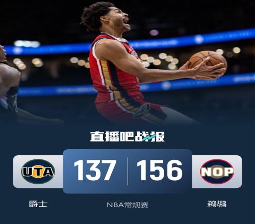 鵜鶘4人20+轟賽季第二高分大勝爵士普爾34+5費爾斯新高40分