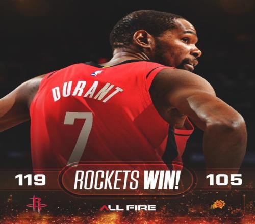 此役火箭開局不利,一度在首節(jié)中段5分鐘左右的時(shí)間里不得分,被太陽轟出24比0一波流。但隨后杜蘭特第二節(jié)回暖,單節(jié)拿到11分2助攻,火箭也提升防守強(qiáng)度,在半場結(jié)束時(shí)將分差縮小到3分。易邊再戰(zhàn),太陽三分手感繼續(xù)冷卻,反倒是火箭這邊杜蘭特和小史密斯各中兩記三分,勝利天平傾斜到火箭一方。末節(jié)火箭繼續(xù)鞏固籃板優(yōu)勢,最終贏下比賽。