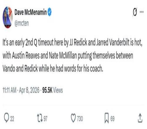 第二節(jié)范德比爾特被換下后情緒激動(dòng),直接在場(chǎng)邊與雷迪克發(fā)生口角內(nèi)訌。