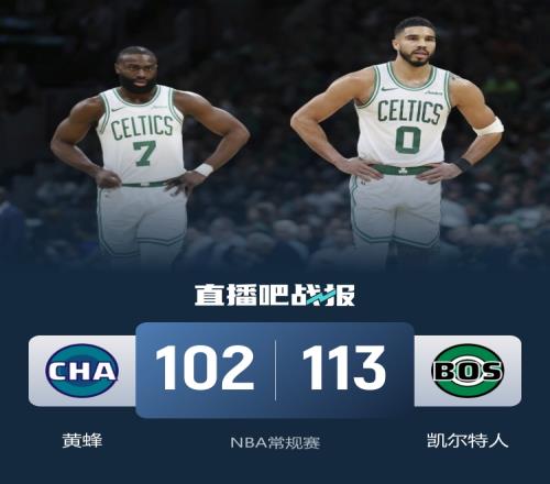 開場(chǎng)后鮑爾狀態(tài)火熱內(nèi)突外投頻頻拿分,剛開始凱爾特人依舊整體發(fā)揮緊咬比分,奎塔在內(nèi)線表現(xiàn)也是十分活躍,首節(jié)尾聲黃蜂輪換陣容一波9-0的攻勢(shì)建立領(lǐng)先。第二節(jié)凱爾特人外線找到手感接連通過遠(yuǎn)投追分,黃蜂外線手感不賴也連續(xù)用三分回應(yīng),凱爾特人一度反超比分,但黃蜂立馬回應(yīng)攻勢(shì),半場(chǎng)過后黃蜂領(lǐng)先6分。易邊再戰(zhàn),塔圖姆開啟得分模式接連砍分,鮑爾毫不示弱也連續(xù)回應(yīng),兩隊(duì)陷入拉鋸戰(zhàn),第三節(jié)尾聲黃蜂進(jìn)攻突然斷電,凱爾特人一波10-0完成反超。最后一節(jié)凱爾特人繼續(xù)保持場(chǎng)上優(yōu)勢(shì),黃蜂命中率下降未能再追上比分,最終凱爾特人擊敗黃蜂取得4連勝。